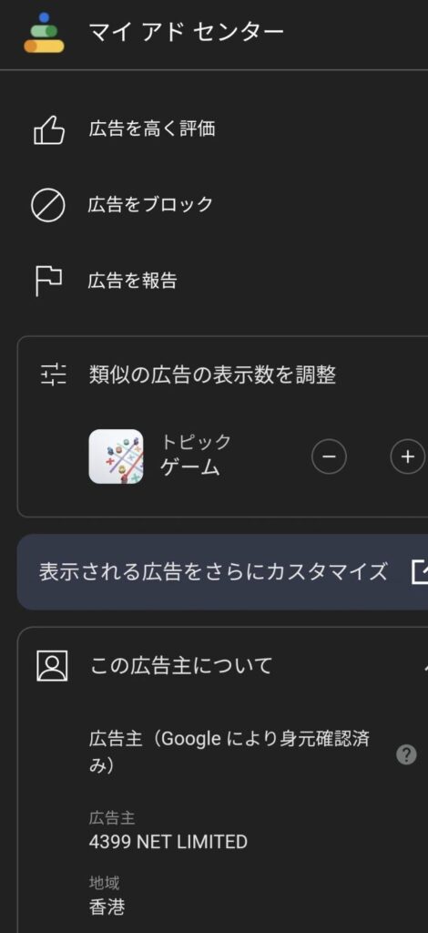 そして今回の会社はYoutubeなど、キノコ伝説の広告の情報を見ると広告主が「4399 NET LIMITED」と書いています!