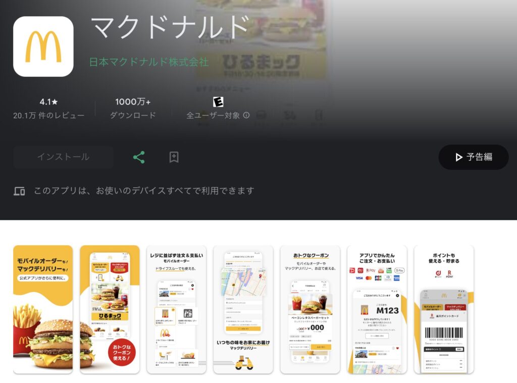 マクドナルドのアプリでモバイルオーダーができるか確認する