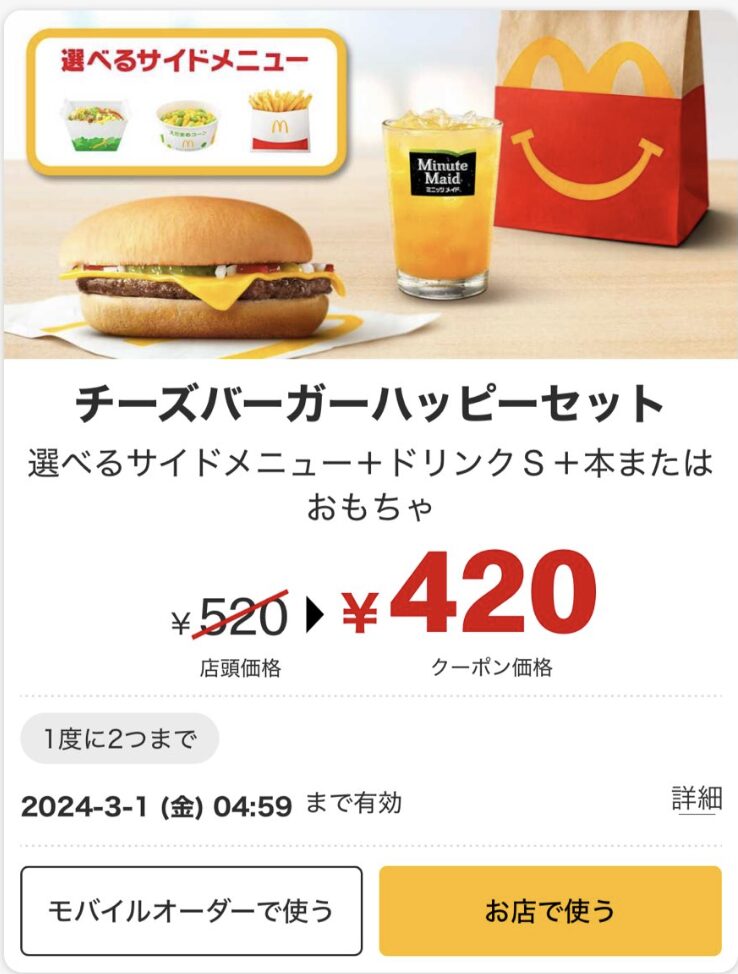また価格を抑えるためにもマックのクーポンは確実に使うのがおすすめです!