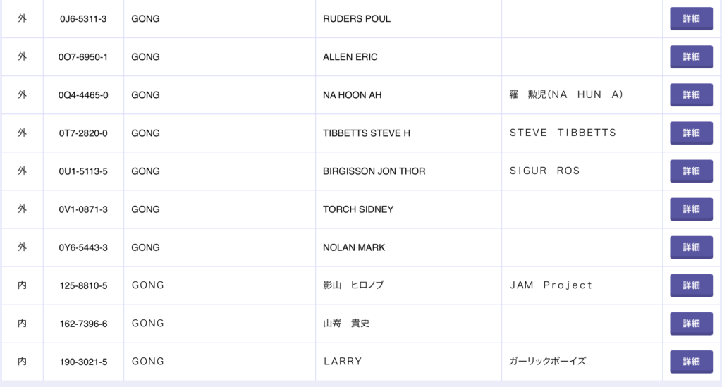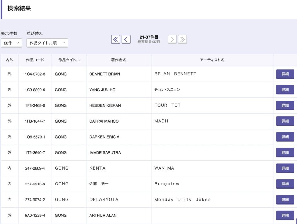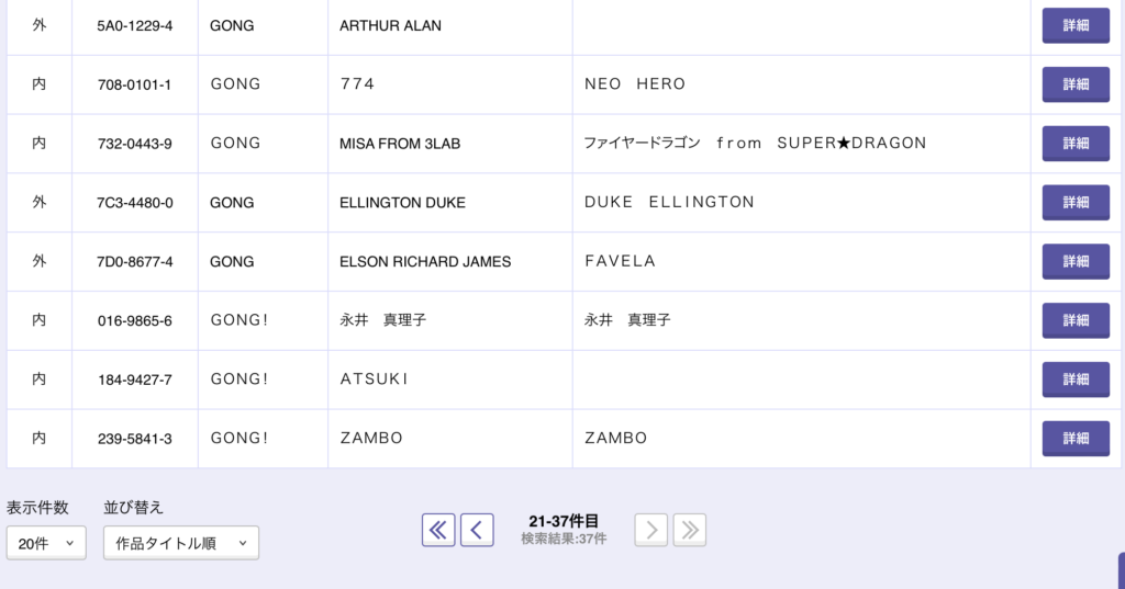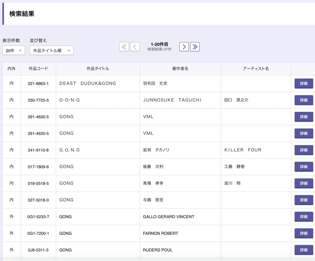 全部で”GONG”と言う楽曲で登録しているものは37件がありましたが、その中で今回の楽曲らしいものは1つもありませんでした。