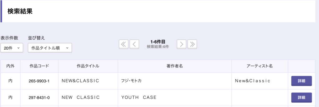 実際に最近ではなにわ男子の新曲の「NEW CLASSIC」の作詞作曲についても公式に発表されていませんでしたが、このジャスラックで検索すると、以下のようにしっかりと作詞作曲が誰がしたのかということがわかります!