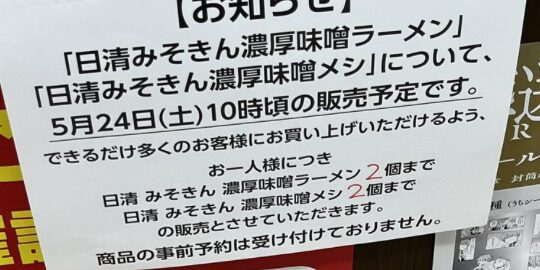 日清みそきん濃厚味噌ラーメン2個まで